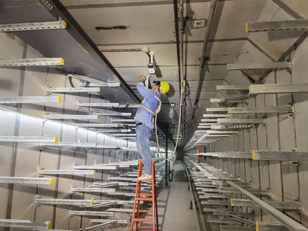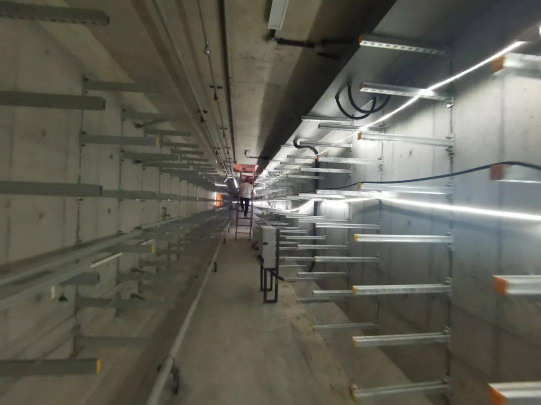 △管廊建設(shè)已經(jīng)進(jìn)入掃尾階段,管廊已經(jīng)成型,工人們正在安裝綜合管廊電力艙巡檢機(jī)器人設(shè)備。