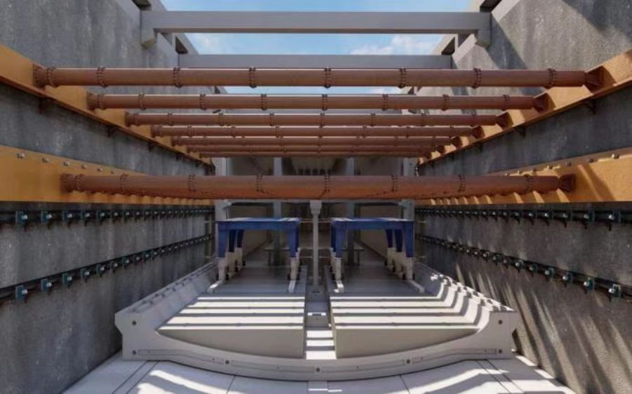 這個(gè)樁撐體系的裝配式車站,在全國(guó)尚屬首例。車站從拼裝工藝、拆換撐、工裝設(shè)備研發(fā)、拼裝過(guò)程中BIM技術(shù)應(yīng)用等方面開(kāi)展科研攻關(guān),需攻克樁撐體系拆換撐與大型預(yù)制構(gòu)件拼裝協(xié)同作業(yè)、拼裝臺(tái)車跨越樁撐體系內(nèi)撐、梁板柱等結(jié)構(gòu)構(gòu)件全預(yù)制裝配化、中板在狹小空間旋轉(zhuǎn)翻身等系列重大施工難題。