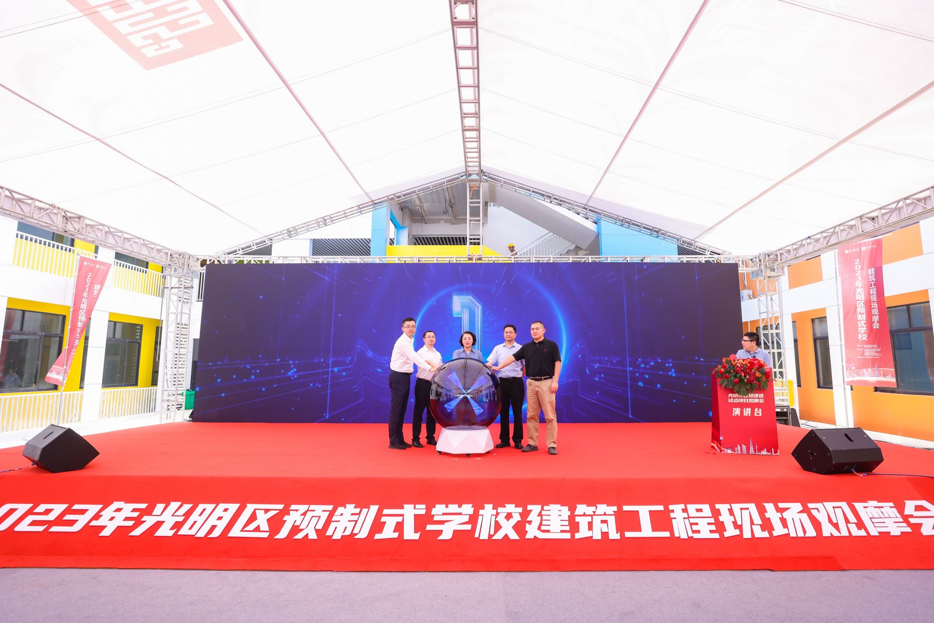 當(dāng)日活動(dòng)由深圳市住房和建設(shè)局、光明區(qū)人民政府主辦,旨在推動(dòng)光明區(qū)智能建造與裝配式建筑工業(yè)化協(xié)同發(fā)展,營造良好的裝配式建筑市場(chǎng)氛圍。長(zhǎng)圳預(yù)制式學(xué)校項(xiàng)目是光明首批模塊化學(xué)校類建筑示范項(xiàng)目之一,實(shí)際工期不足300天,高標(biāo)準(zhǔn)完成了光明學(xué)位供給任務(wù)。該項(xiàng)目總建筑面積2.6萬平米,主要建設(shè)內(nèi)容包括小學(xué)42個(gè)班、幼兒園12個(gè)班、運(yùn)動(dòng)場(chǎng)及相關(guān)配套設(shè)施等,建成后可滿足小學(xué)1890人、幼兒園360人的教育需求。