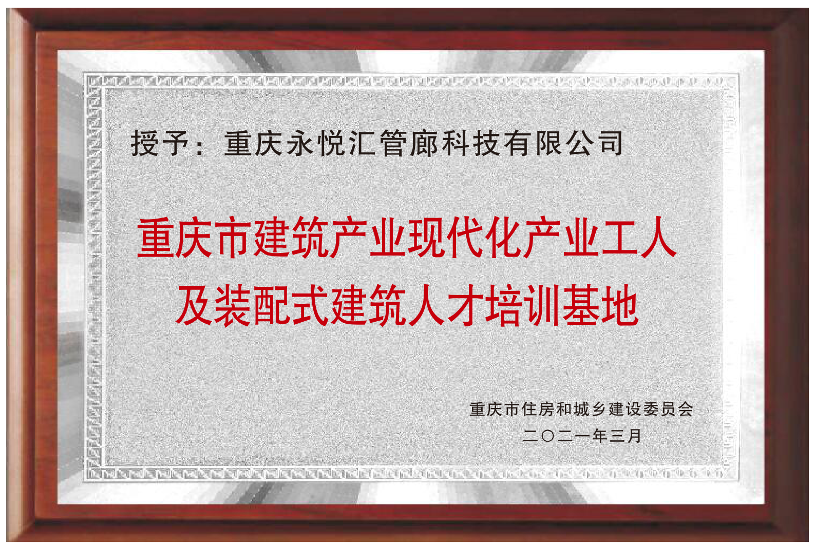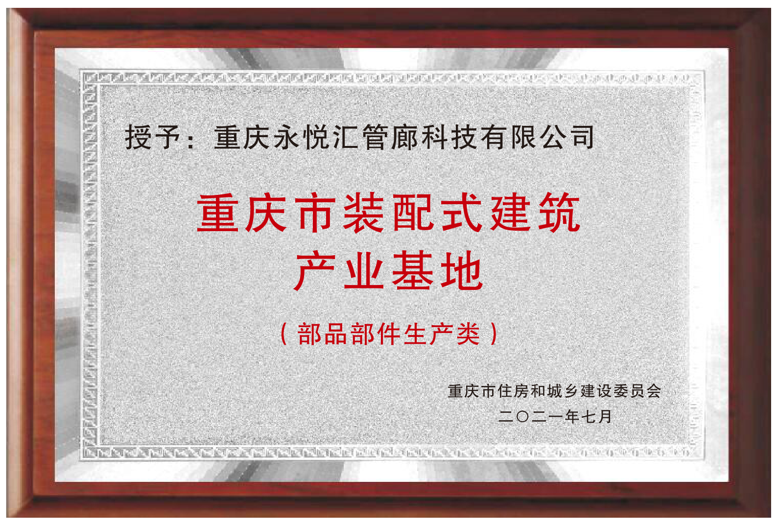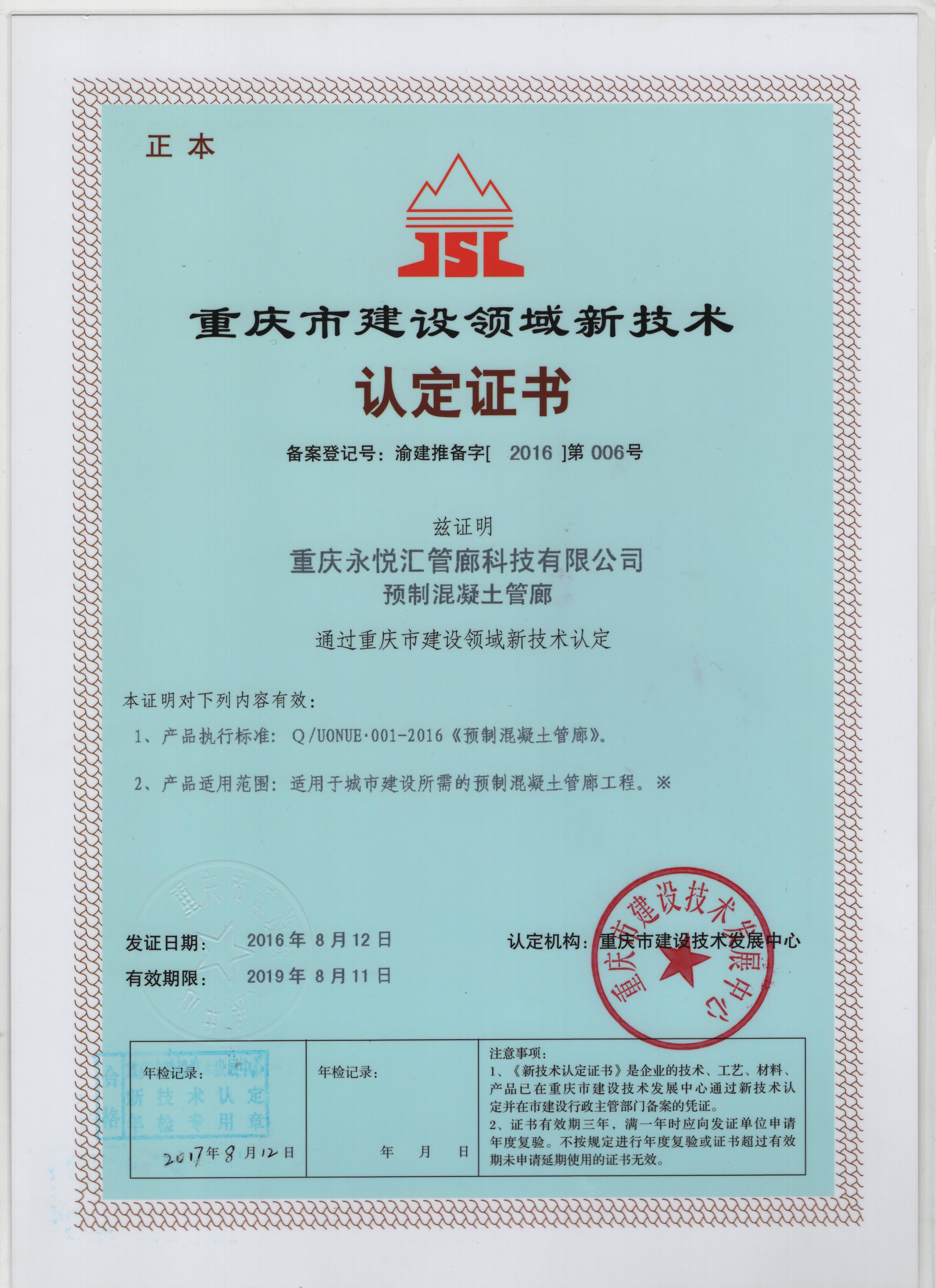 重慶永悅匯管廊科技有限公司位于重慶市高新區(qū)金鳳園區(qū),是重慶市住房和城鄉(xiāng)建設委員會認定的重慶市裝配式建筑產(chǎn)業(yè)基地(部品部件生產(chǎn)類)和建筑產(chǎn)業(yè)現(xiàn)代化產(chǎn)業(yè)工人及裝配式建筑人才培訓基地。公司生產(chǎn)基地6萬多平方米,并有14000平方米的研發(fā)試制檢測中心。公司是一家以預制綜合管廊、裝配式建筑部品部件、海綿城市構件等產(chǎn)品研發(fā)、設計、制造、安裝和綜合管廊運維系統(tǒng)集成為主的高新技術企業(yè),已通過ISO體系認證。公司在預制綜合管廊和裝配式建筑預應力結(jié)構體系等領域的研發(fā)創(chuàng)新處于國內(nèi)領先水平。